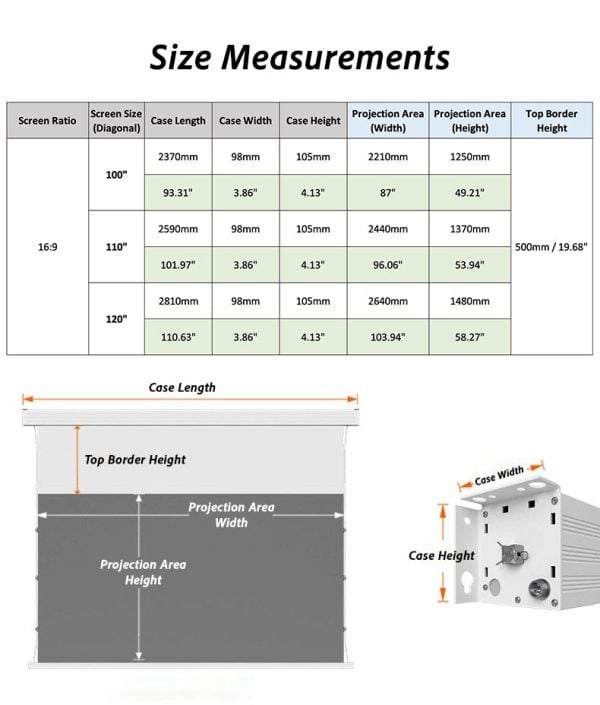 | Size | 100" inch, 110" inch, 120" inch |